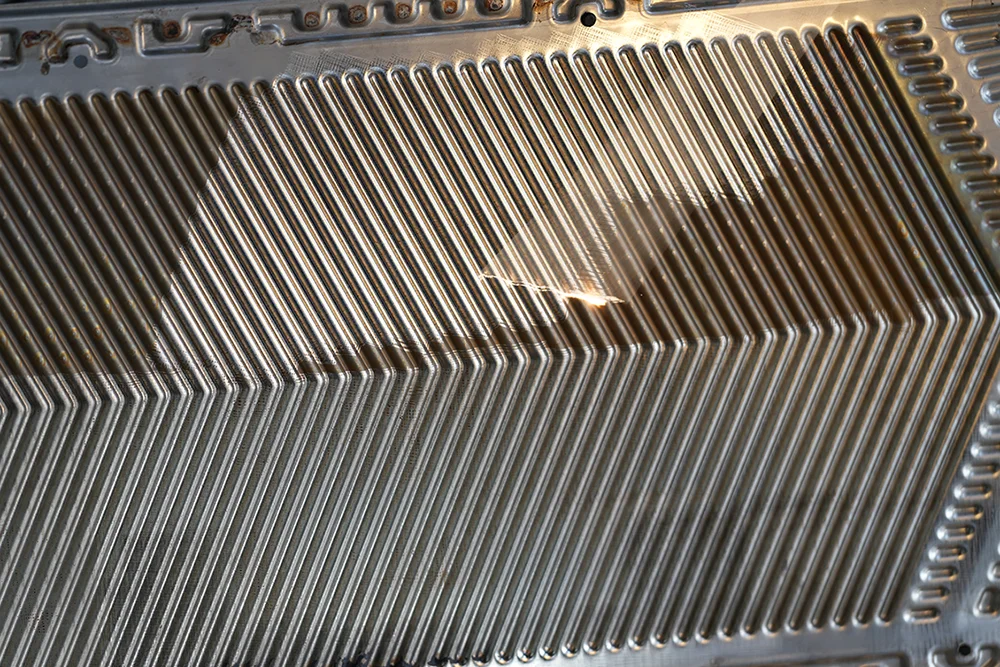 verrosteter Wärmetauscher → danach blank und einsatzbereit.