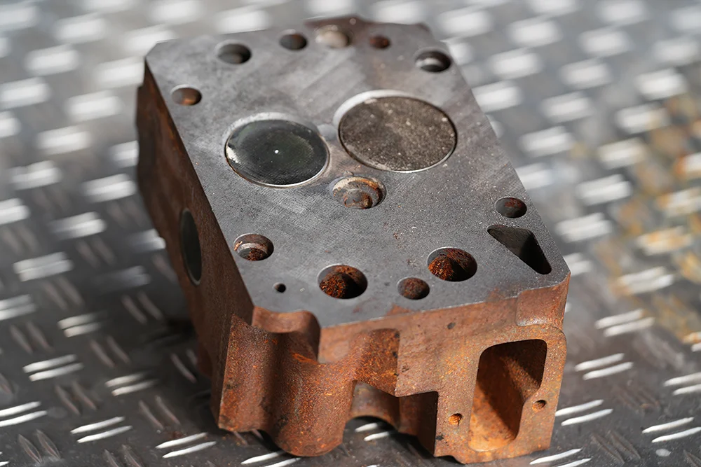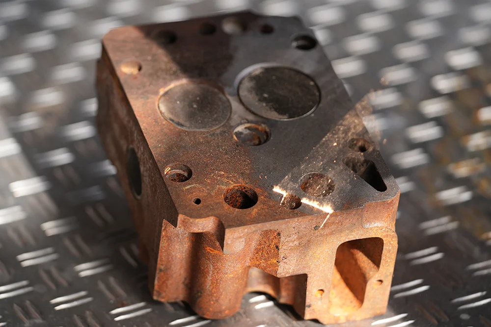 verrostetes Maschinenbauteil → danach blank und einsatzbereit.